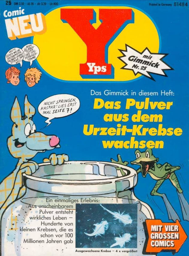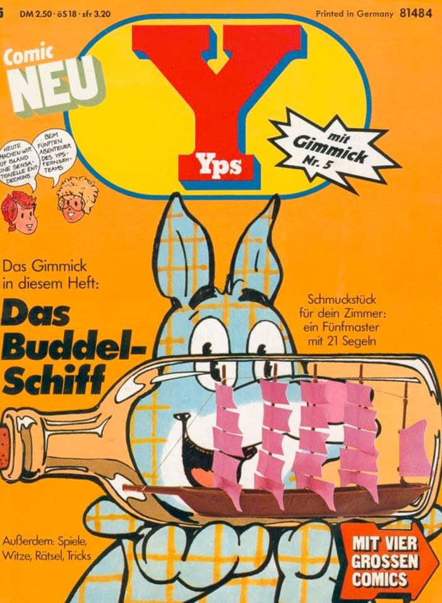 Trotz alledem: Vielfalt an Themen, Zeichenkunst und Quellen einerseits also, ähnlich in Figuren und Layout-Auftritte – war wohl das, was ein so rein westdeutsches Comic-Magazin wie YPS besonders auszeichnete, inklusive Kurz-Comics wie eben YPS & Co. oder die „Moderation“ der Gimmicks etwa durch den Comic-Hund Pif.